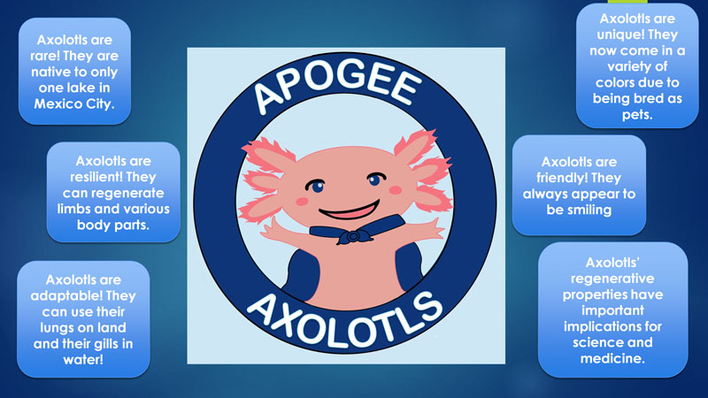 To celebrate our upcoming 10th birthday as a school, we've decided on an official mascot and school anthem. Meet Axel, the axolotl. Our new school mascot! Read a book about Axel's journey. Use the arrows or click on the pages to turn the pages. Listen to our new school anthem